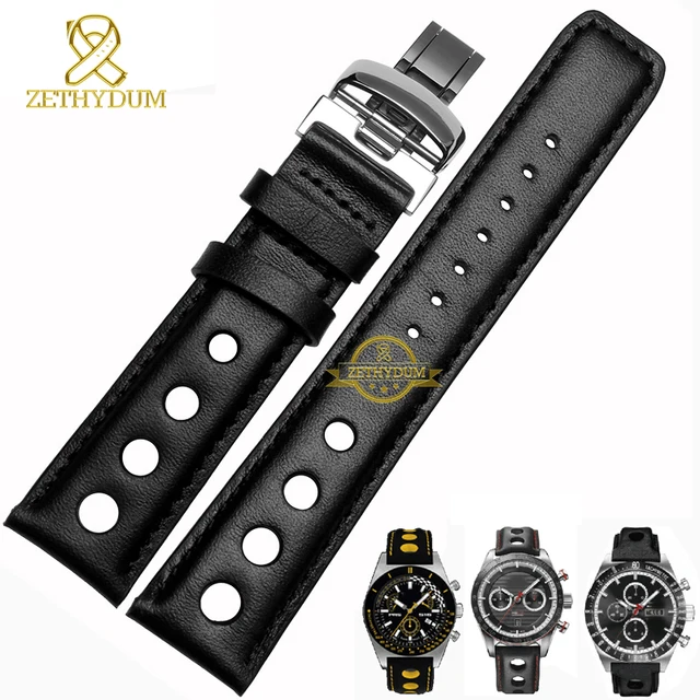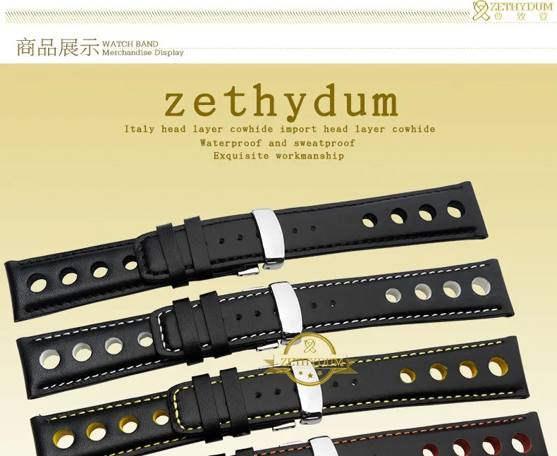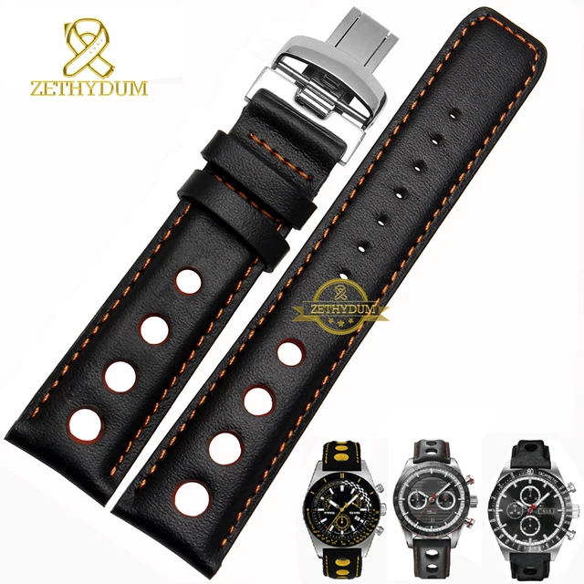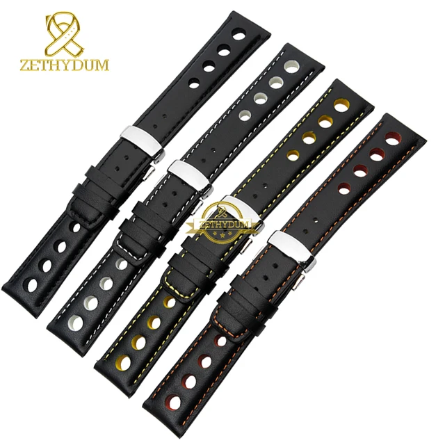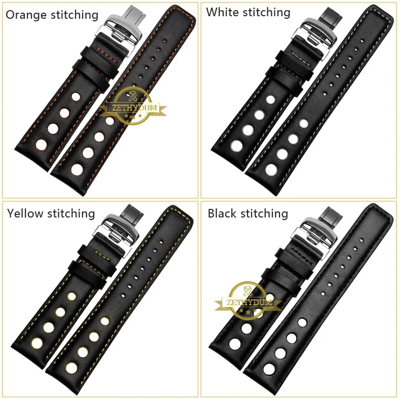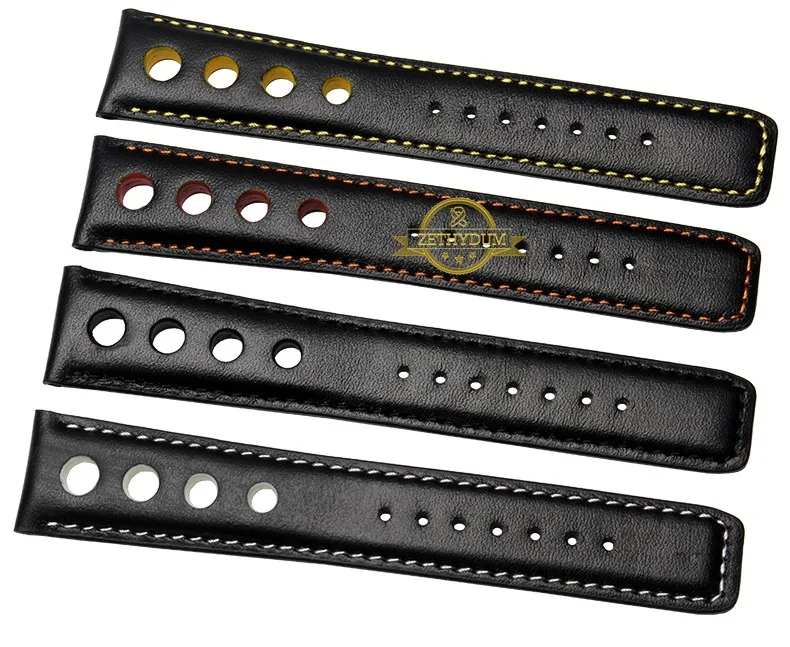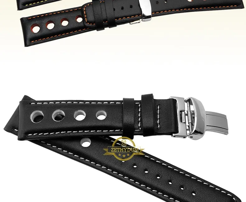 정품 가죽 시계 스트랩 손목 시계 벨트 남성 가죽 팔찌 20 미리메터 스포츠 손목 밴드 레드 오렌지 스티치