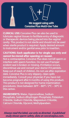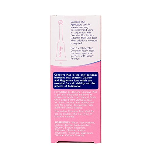 -. Feature : INCREASED CHANCES OF GETTING PREGNANT: Using our fertility-friendly personal lubricant can assist your efforts to get pregnant by increasing your chances of conceiving a baby naturally, safely and in the easiest way possible. / SPERM VIABILITY SUPPORT: The Patented formula is a fertility lubricant designed to enhance viability and motility of sperm. The only fertility lubricant that contains calcium and magnesium to support the sperm, unlike most lubricants that slow down the fertilization process. / DEVELOPED BY DOCTORS: The fertility and sperm safe personal lubricant was developed by doctors and is cleared by the FDA. The lubricant is used by fertility clinics and recommended by experts to couples that are trying to conceive. / FOR ALL COUPLES THAT ARE TRYING TO CONCEIVE: Whether you're just starting trying or you've been trying to have a baby for a while, using Conceive Plus helps create a fertility friendly environment to increase your chances. / MIMICS THE BODY'S NATURAL FLUIDS: The fertility personal lubricant supports sperm is isotonic and pH balanced to mimic natural fertile fluids during ovulation.