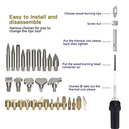 - Quick Heating - Premium quality 60W quick heating wood burning kit with 28 assorted soldering tips and accessories can be used easily for all skill levels including wood burning beginner, experiencer, expert.