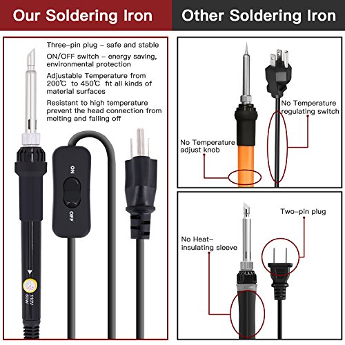 - Multifunction - Combine their functions of soldering,wood burning and leather burning . Works at adjustable temperatures from 200° to 450°C,which the Welding Iron is Small and compact, lightweight pen style.