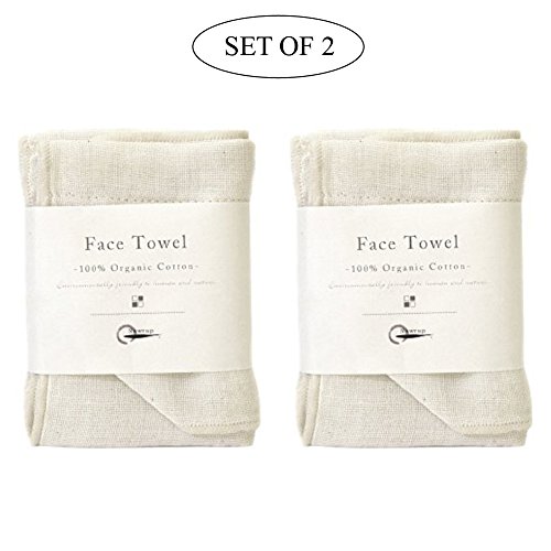 -. Feature : Set of 2 Face Towels - Natural and made with 100% US-grown organic cotton / Not colored with any dyes or chemicals - Ideal for people with sensitive skin / Traditional Japanese weaving and construction techniques used; different than your typical face towel / Made of 4 layers of material for extra absorbency and durability / Dimensions: 14 x 14"; face towel is washing machine safe but will shrink by about 10% after the first wash - please do not put in the dryer