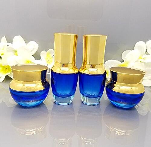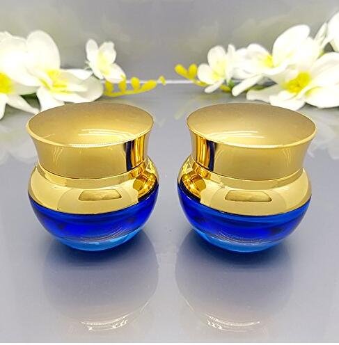 1PCS 30ML1oz Blue Empty Upscale Glass Bottle Jar Container With Gold Lid Inner Pad Cosmetic Makeup Eye Shadow Jar Emulsion Face Cream Travel bottle Container