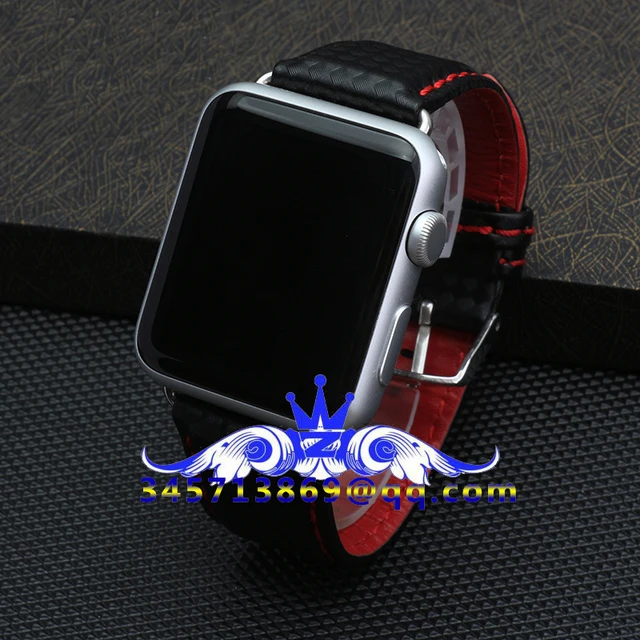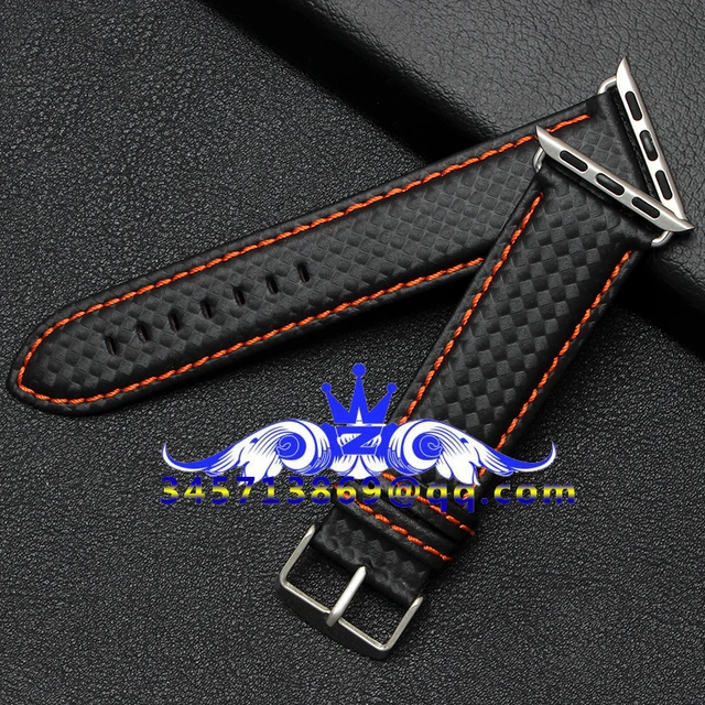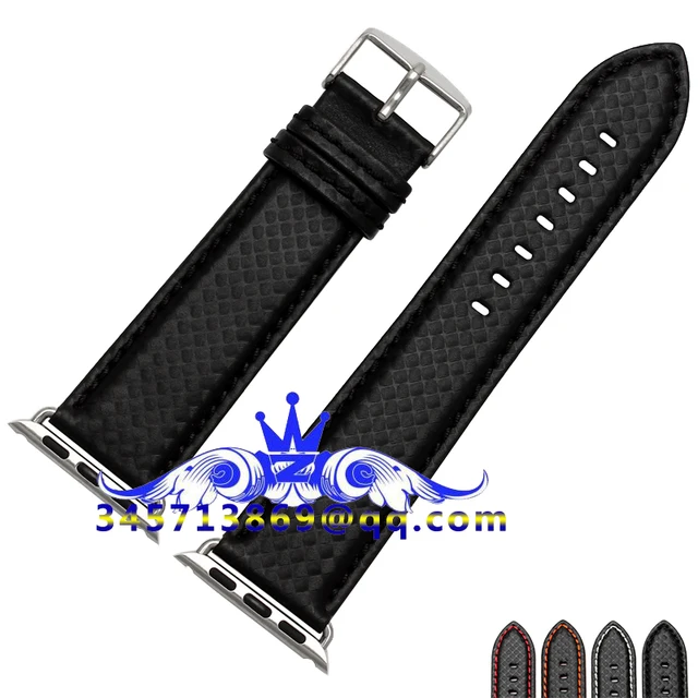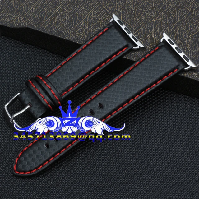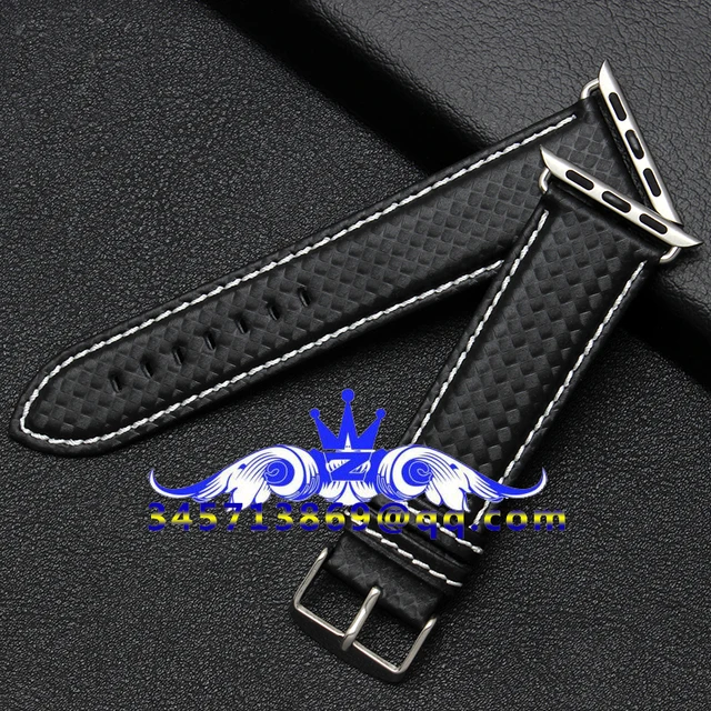 | [해외]38/42 미리메터 애플 시계 가죽 스트랩 탄소 섬유 패턴 스트랩 방수 및 땀 붉은 손 바느질 화이트 라인 블랙 라인 |