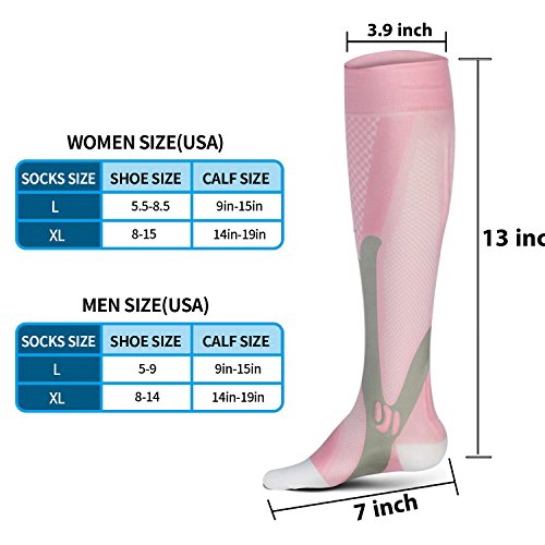 Compression Socks maximize muscle oxygenation and boost energy with unparalleled, scientifically optimized, compression technology for all-day benefits.Better Circulation, Strong Muscles, Healthy Joints. Compression socks 20-30mmHg compression technology, our compression socks mens womens footwear applies the perfect amount of pressure on every inch of your calf and foot to: - Cut down on fatigue - Boost endurance - Reduce swelling - Provide leg and foot support Best Graduated Compressed Socks is a healthy gift to yourself or your friend,these socks do make a difference created for men and women Graduation compression is stimulates blood flow and improve oxygen delivery to your muscles, this equals faster recovery and better performance, to maximize power, boost energy, and speed recovery time. Then This Graduated Compression Socks Pair Is A Keeper! What are you waiting for? Scroll Up Click Add To Cart Now! 0 |