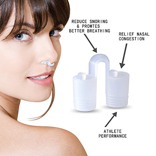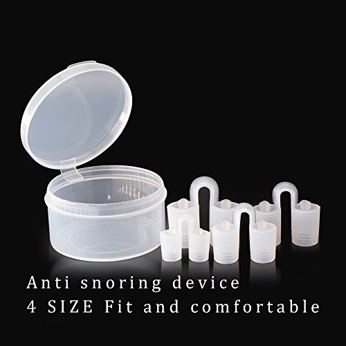 -. Feature : Comfortable and safty -Made of soft medical grade Silicon. Odor free and PBA free.Safety and healthy.Extremely comfortable / Easy to use- Simply insert the vent into the nostrils and sleep in silence.Anti-Snoring Nose Vents instantly stops snoring by maximizing the airflow in the nasal passageways. Effective to stop snoring originating from the nose.Anti Snoring Device is proven and tested to effectivly reduce snoring / Great health care item- Using the snore buster means high quality deep sleep, which can result in more energy, better focus, improved memory, improved heart health, lower stress, and much more / Not disturbing your partner,allow you and your partner to regain a peaceful nights sleep. Sleep through the night and wake up feeling rejuvenated! / COMFORT & FIT! - Each pack includes 4 different sized reusable vents to suit any size nostril & nasal passage