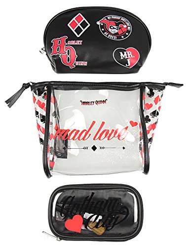 Harley Quinn Mad Love 3 Piece Cosmetic Toiletry, Make Up Bag & Brush Gift Set