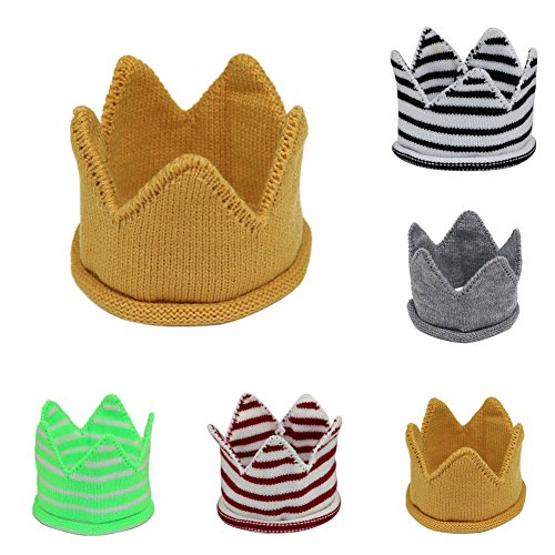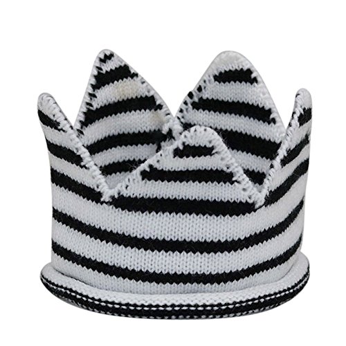 Funbase Baby Knitted Crown Beanie Hat Solid/Stripe Crochet Birthday Party Cap