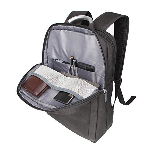 -. Feature : SECURITY: Laptop up to 15.6 inches will be safe inside padded divider, with an anti-theft strap locked / SLIM BODY: Backpack size 11.4 x 4.5 x 16.1 inches, weight 1.8 lbs only. Giving up some odd useless structures like other sturdy backpacks but keeping reasonable ones, this bag aims to make it slim but capable. Square compact design makes it modern and fashionable / ORGANIZED: 2 main compartments for laptop, Ipad, A4 files and documents, front hidden zipper pocket for easy access notebook or even a mini tablet, middle compartment has 6 dividers for cellphone, pens, keys, charger, the inside zipper pocket in last compartment for personal important items / COMFORTABLE: Luxury aluminum handle is more comfortable to grab, back panel and shoulder straps provide extra padding for comfort and maximum back support / MUTI-FUNCTIONAL: This laptop backpack is ideal for day trips and quick flights for business travel, or just daily use for students
