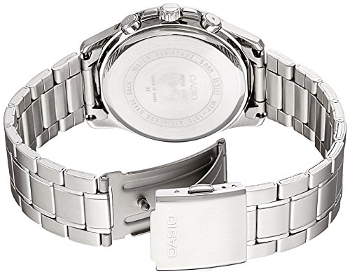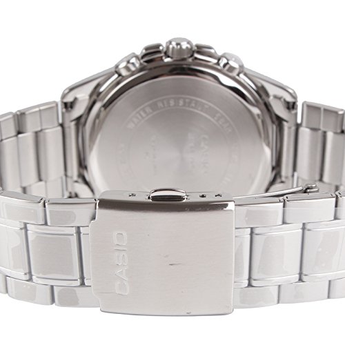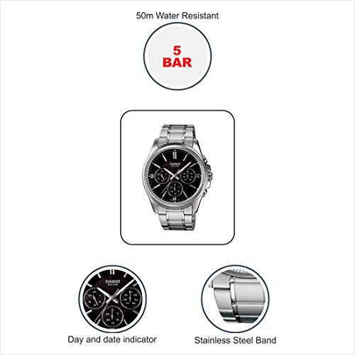 Brand, Seller, or Collection Name:Casio Model number:MTP-1375D-1 Part Number:MTP-1375D-1 Item Shape:Round Dial window material type:Mineral Display Type:Analog Case material:Stainless steel Case diameter:35 millimeters Case Thickness:10 millimeters Band Material:Stainless Steel Band width:20 millimeters Band Color:Silver Dial color:Black Calendar:Day and date Special features:N/A Item weight:9.92 Ounces Movement:Quartz: Battery Water resistant depth:50 Meters