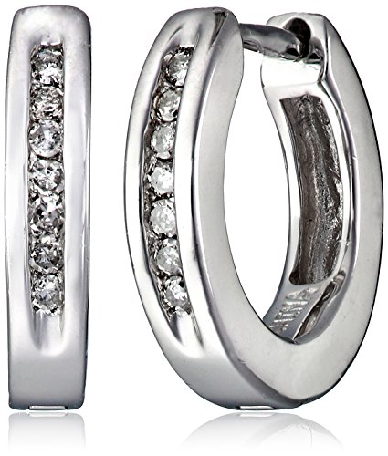 Sterling Silver Channel-Set Diamond Huggie Hoop Earrings (1/10 cttw, I-J Color, I2-I3 Clarity)