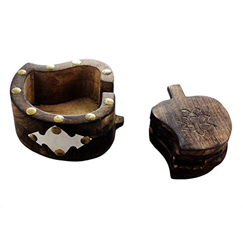 Gifts From India - Handmade Wooden Hand Carved Mango Shape Coaster Stand Box.