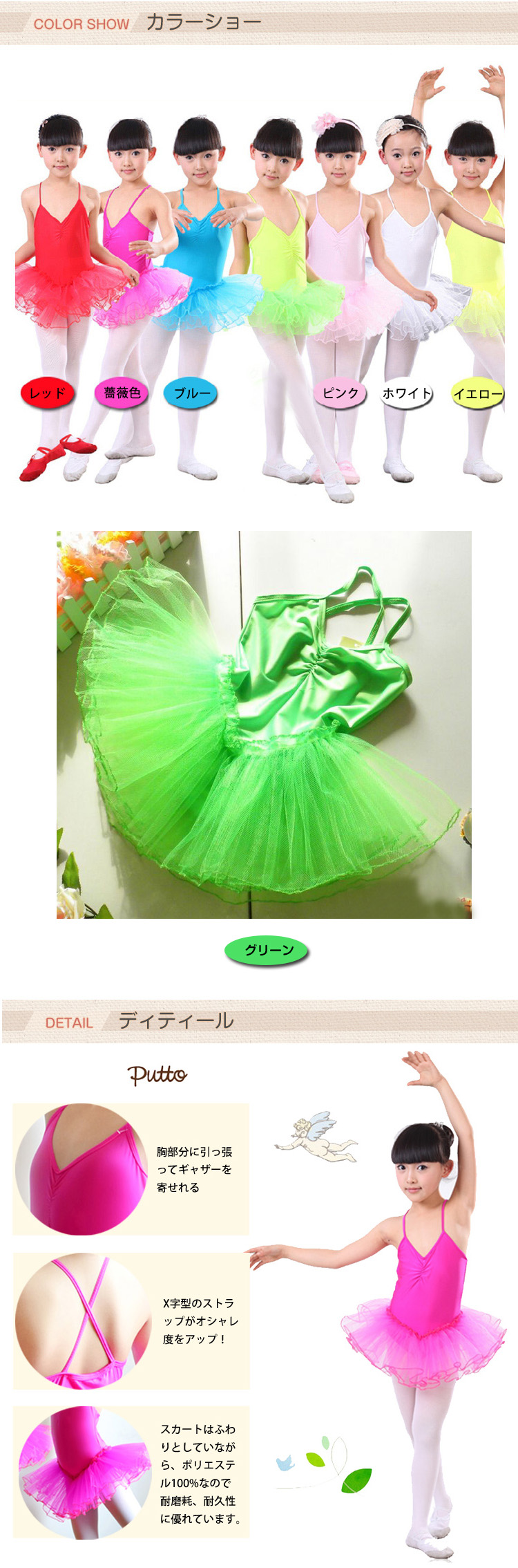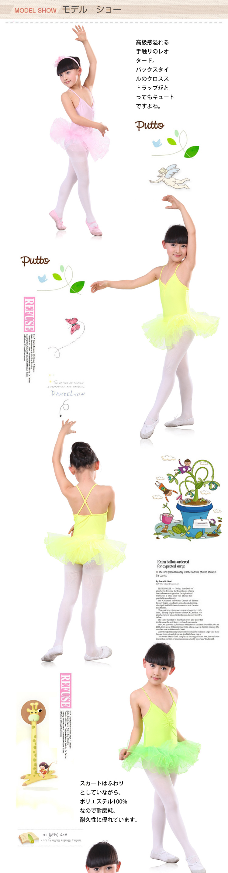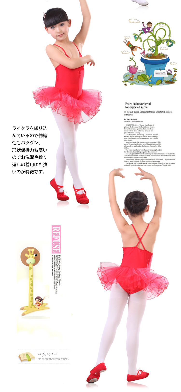 | 高級感溢れる手触りのレオタード。バックスタイルのクロスストラップがとってもキュートですよね。伸縮性抜群の生地のレオタードで、大変可愛らしく、バレエの発表会に最適!女の子が大好きSweetな7カラー展開!ライクラを織り込んでいるので伸縮性もバツグン。形状保持力も高いのでお洗濯や繰り返しの着用にも強いのが特徴です。スカートはふわりとしていながら、ポリエステル100%なので耐磨耗、耐久性に優れています。 | |