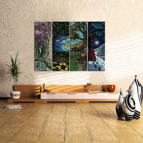 - Title : RAIN QUEEN Modern Abstract Art Romantic Cartoon Pictures Moon Night Trees Flowers Oil Paintings on Canvas Wall Art for Home Decoration Huge Size No Frame 4pcs