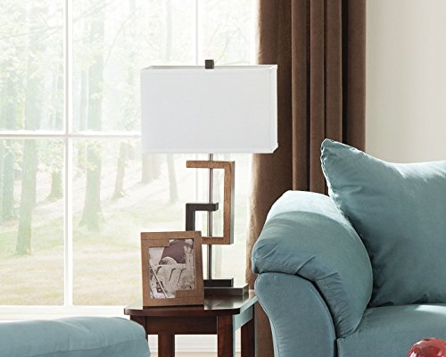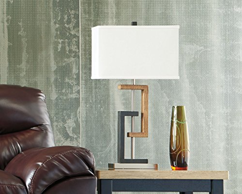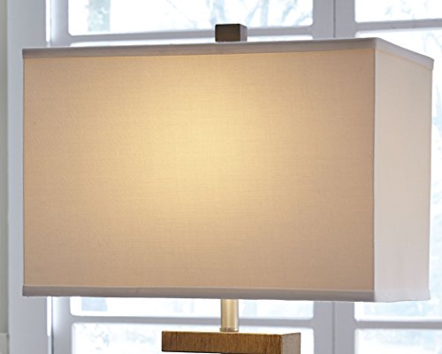 Ashley Furniture Signature Design - Syler Faux Wood Table Lamp - Contemporary Rectangular Shades - Set of 2 - Brushed Silver