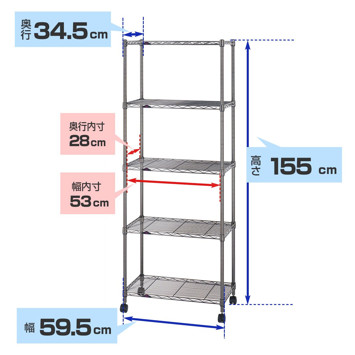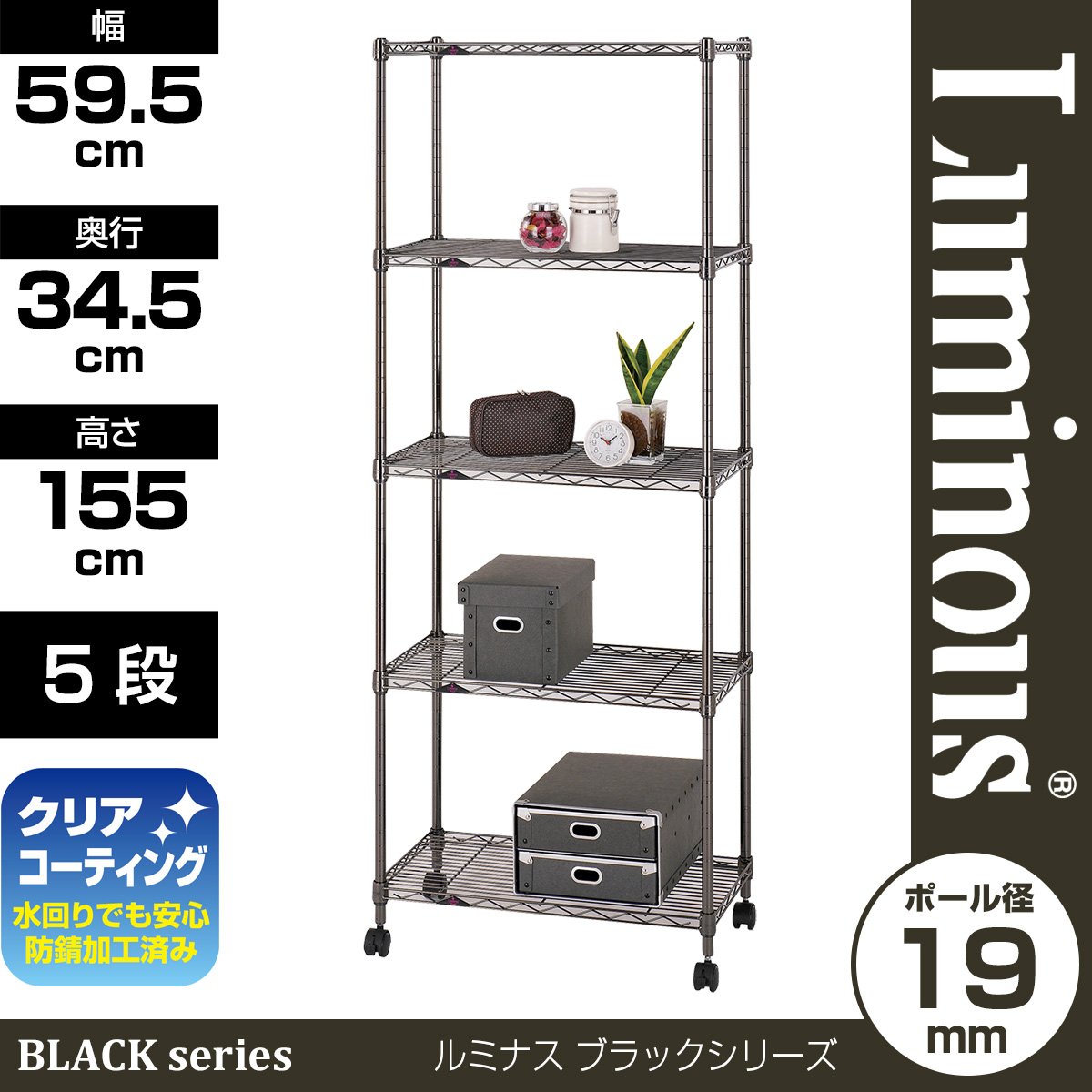 Shelf · Pole: Steel (Nickel plated) Sleeve: ABS resin Other: With castors Load capacity: per shelf board: 80 kg Paul: Φ 19