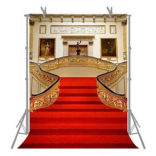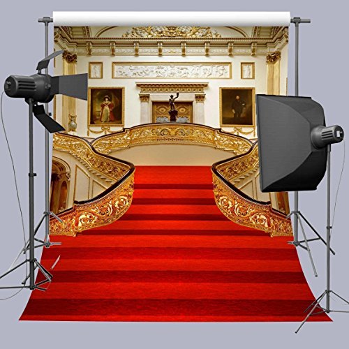 FUERMOR 5x7FT Red Carpet Stairs Golden Hall Photography Backdrop For Wedding Events Photo Shooting Props Wall Mural R191
