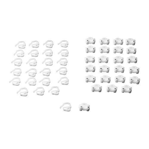 24 PACK - Ikea Kvartal Glide for hanging curtains --- For easy hanging of curtains with KVARTAL curtain suspension system. Glide part/ Hook: Acetal plastic.Stop fitting: Steel, Nickel plated. Part of the KVARTAL curtain hanging system. Suitable for curtains with gathering tape. 2 packages is enough for 4 curtain panels.Feature
