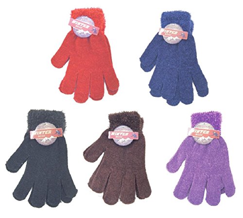 (DINY Home Style)/Accessories/Cold Weather Accessories/DIRECT FROM USA/(3 Pair) Ladies Warm Chenille Knit Magic Gloves With Feathered Cuff One Size Fits All