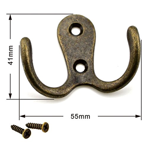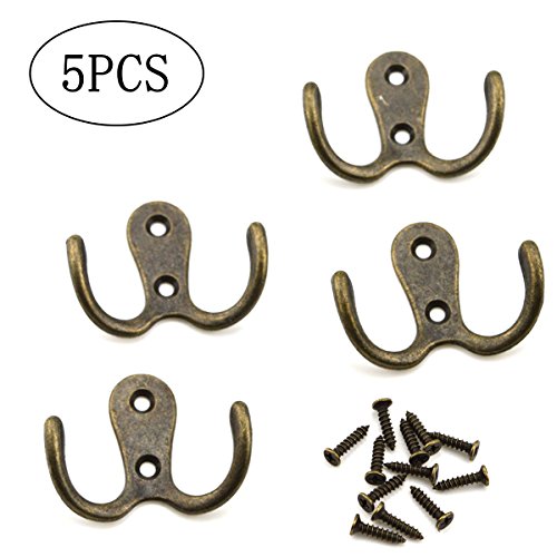 URBEST 5 Pcs Bronze Tone Vintage Style Wall Mounted Double Hook Hangers for Hanging Towel, Clothes, Scarf ,Bags (Double Hook)