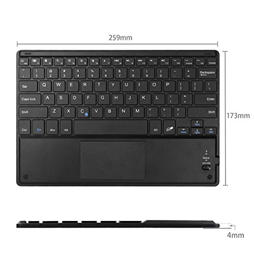 Fintie Ultra-thin 4mm Wireless Bluetooth Keyboard [Touch X1 Ultra Slim Series] with Built-In Multi-Touch Touchpad [Retail Packaging], Black