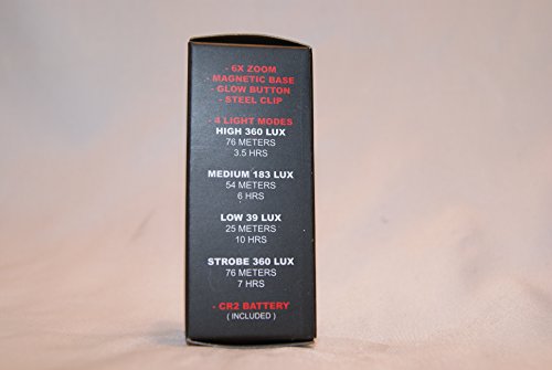 Studio : Nebo Publisher : Nebo Binding : Sports Product Description Micro Redline OC 360 LUX LED FlashlightThe Micro Redline OC 360 LUX LED Flashlight packs enough power to carry the REDLINE? name. This light is small enough to fit in the palm of your hand, but bright enough for any situation. Equipped with OC? Technology, the Micro has a perfectly dispersed beam of light while in flood mode. The Micro REDLINE? OC??small never shined so big!Micro Redline OC 360 LUX LED Flashlight SpecsModel:6272Length: 2.625inDiameter(Barrel): 0.8125inDiameter(Head): 0.875inWeight: 0.1 lbsBatteries: 1 CR2 Battery (included)Micro Redline OC 360 LUX LED Flashlight FeaturesLight: High-power 360 LUX LedOC TechnologyAnodized aircraft-grade aluminum and Water and impact resistantMagnetic baseConvex lenses6x adjustable zoomProtective LED housingNeed more than one? We offer great discounts on quantity orders and Discount Shipping offers available.SpecificationsLength: 2.625 ? Diameter: .08125 ? Country of Manufacture: China 0
