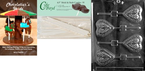 Cybrtrayd 'Swiss Heart Lolly' Valentine Chocolate Candy Mold with 50 4.5-Inch Lollipop Sticks and Chocolatier's Guide