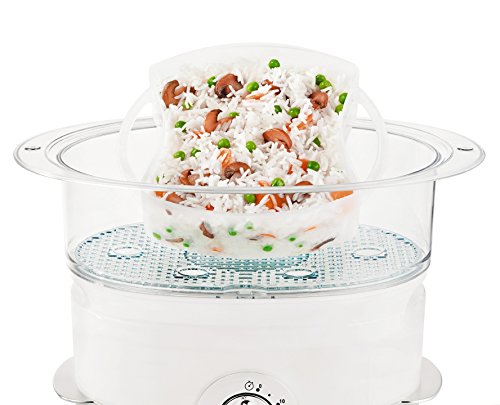 -. Feature : Maximaler Nutzen & minimaler Lageraufwand! Patentierte & platzsparende Verstauung: Die Garbehälter lassen sich ineinander stapeln und auf dem Sockel verstauen / Drei spülmaschinengeeignete Garbehälter (je ca. 3l) / Wasserstandsanzeige und externe Wassereinfüllöffnung (befüllbar während des Kochvorgangs) / Deckel: ideal zum Abtropfen und Servieren (auf alle Garbehälter passend) / Turbo-Ring zur schnellen Dampferzeugung