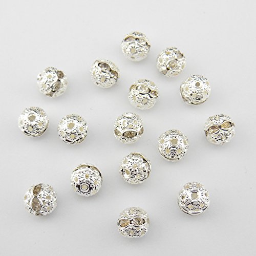 30PCS 10MM Silver Color Crystal Rondelle Spacer Beads Fire Ball Beads for Jewelry Making & DIY (ZQ-1001-10)
