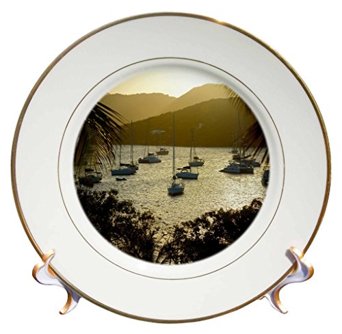 3dRose cp_208626_1 Caribbean BVI Marina Cay Catamarans and Sailboats at Sunset Porcelain Plate, 8"