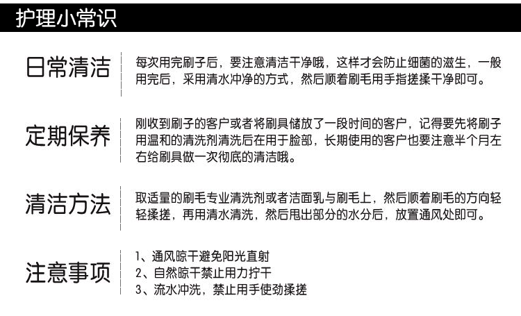 温馨提示:由于刷子生产完就装盒,会有些味道哦~这个是正常的~亲们收到货后,把盒子打开通风下,味道会渐散的哦!(全新的东西都会有些味道的,亲们不要介意哦~就算是我们花几万买的名牌包包还是几十万买的新车,也会有点味道的哈,这么对比,亲们应该可以谅解许多~希望亲们不要因此给出中差评,红楼梦在此感谢亲亲们的支持)