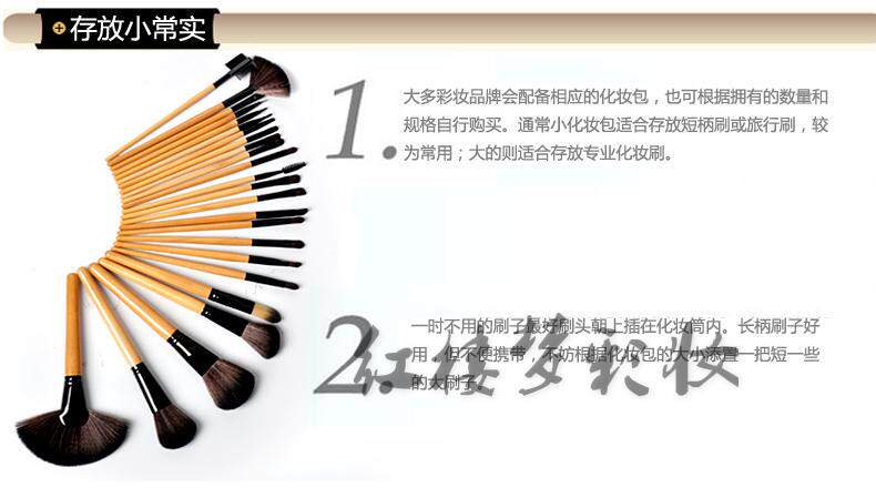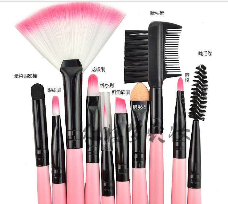 蜜粉刷1支;腮红刷1支;粉底刷1支;眼影刷4支;遮瑕刷1支;唇刷1支;斜头眉粉刷1支;精细眼线刷1支;海绵眼影棒1;扇形余粉雨刷;睫毛刷1支;两用眉梳刷1支。