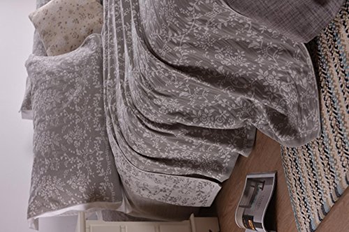 Premium Thin Jacquard Cotton Throw Blanket - Queen Size,71'X86' Dyed Yarn Ivy Floral Lightweight Soft Throws with Breathable Gauze Design | Grey Cozy Blanket for Bed, Couch