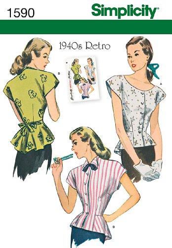 Simplicity Creative Patterns 1590 Misses' 1940's Retro Blouse, H5 (6-8-10-12-14)