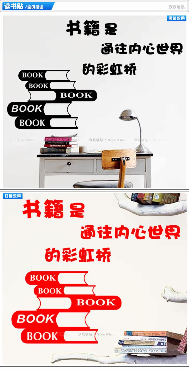 书本英文字墙贴读书学习学知识学生宿舍寝室教室墙面装饰励志贴纸