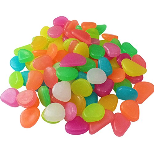 200 PCS Glow in Dark Garden Pebbles Luminous Stone for Walkway Yard Fish Tank, DIY Decorative Gravel Stones Ornaments, or Yard Outdoor Fish Tank in Colorful Color
