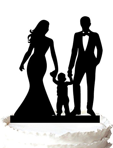 Family cake topper -Bride and Groom hand with their cute son silhouette wedding cake topper
