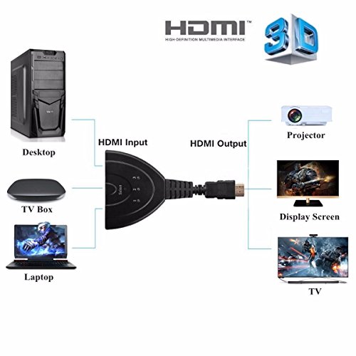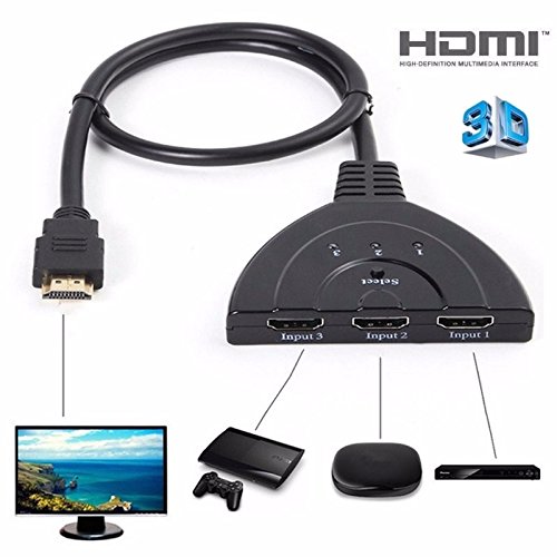 Pigtail 3 to 1 HDMI Switch, EPOLLO HD 1080P 3FT Cable HDMI Switcher High Speed Auto Switch Selector Support HDMI 2.0, HD 3D, Audio, for Xbox One S, Xbox 360, PS3 console, ps4 games, DVB Receivers
