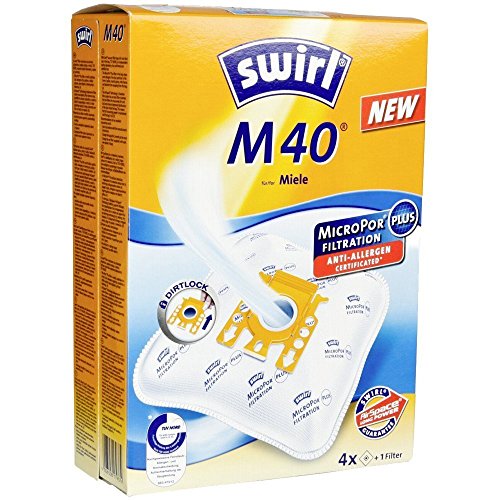 This practical set includes: 4 dust bags, a Motor protection and one Super Air Clean filter. For a dust-free home Allergy friendly Normal house dust and allergen particulate matter, such as pollen, mold spores, mite faeces and bacteria are held in the bag. Relief of allergenic fine dust in the room air for allergy sufferers. Convenient, clean disposal: Lockable plate for a clean change and dust-free disposal. Simply comfortable and safe clean. For the sake of the environment: Made from at least 40% recycled material and material from renewable raw materials. This is how Swirl makes a contribution to environmental protection and resource conservation Highest suction power and perfect adaptation Intake dirt and dust are prefiltered, the particles are distributed evenly throughout the bag. Full suction until the bag is actually full. Suction does not decrease, as is the case with conventional vacuum cleaner bags. Practical rounded corners ensure perfect fit in all vacuum cleaners. Optimum utilization of the dust chamber in the vacuum cleaner. Your benefits at a glance: Hypoallergenic vacuum cleaner bag for a clean home. High suction power up to the full bag Permanently high suction power Very high allergy-friendliness Perfect adaptation to any vacuum cleaner Convenient, clean disposal Lockable retaining plateFeature