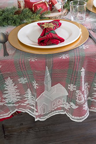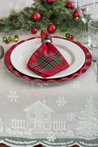 DII 100% Polyester, Machine Washable, Holiday, Snow Village Lace Tablecloth, 52x90" Seats 6 to ...