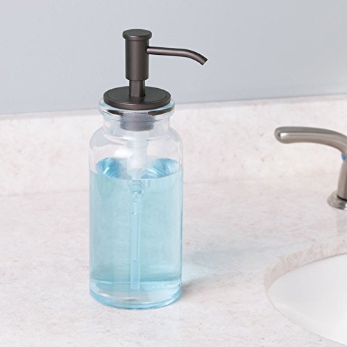 InterDesign Westport Glass Soap Dispenser Pump for Kitchen or Bathroom Countertops, Clear/Bronze