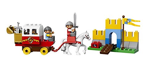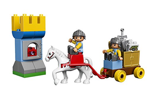 Includes 3 knight LEGO DUPLO figures Features a horse-drawn carriage, castle tower and an apple tree Castle tower features an opening window