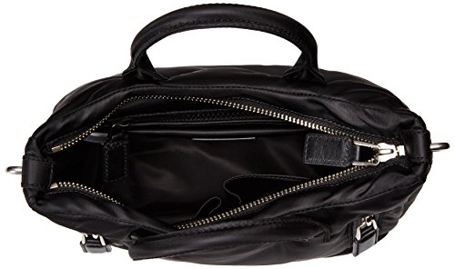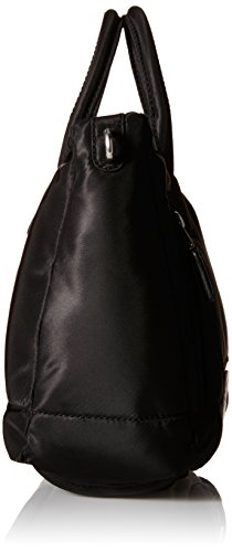 Lightweight nylon tote embossed logo plaque and functional vertical-zipper compartments