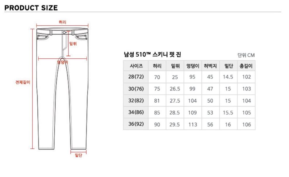 사이즈 | 28(72),30(76),32(82),34(86),36(92) |
