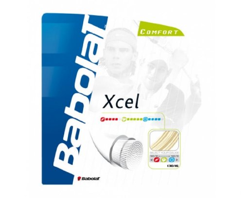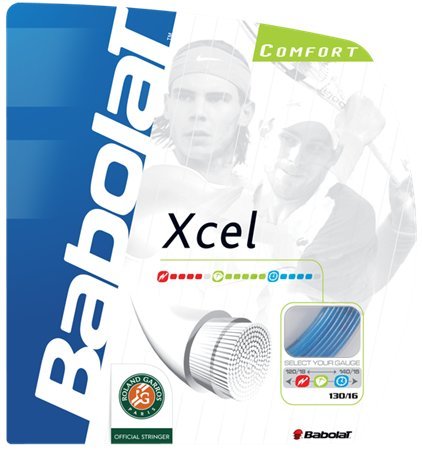 Studio : Babolat Publisher : Babolat Binding : Misc. Product Description Babolat Xcel Tennis String Multifilament Synthetic. Xcel provides the ultimate in comfort and durability. It's remarkable durability is due to the large number of Polyamide fibers that are adhered perfectly together. The increased elasticity of the fibers also provide optimal comfort and better tension maintenance. This string is the ideal partner for players looking for the best combination of comfort and durability. Length: 40 feet / 12 meters Gauge: 16 gauge / 1.30mm 17gauge / 1.25mm Color: Blue 0