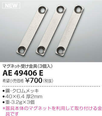 ●40×6.4 厚2mm 重-3.2g×3個※器具本体のマグネットを利用して取り付ける金具です