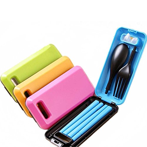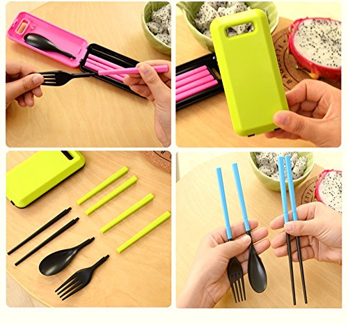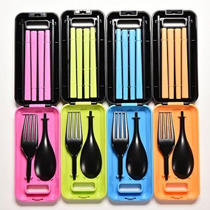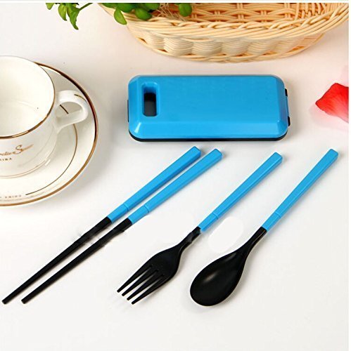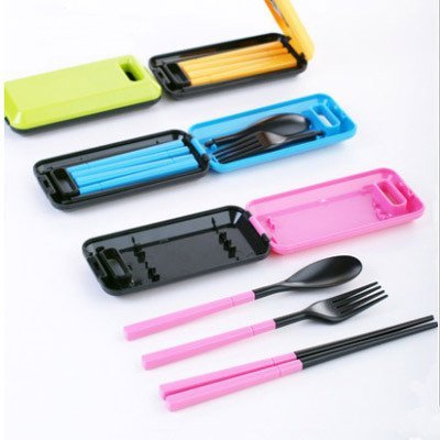 -. Feature : Contains: Chopsticks + Spoon + Fork + Box / Material: made of ABS plastic, no harmness to human body / Size:Chopsticks: 7.4 inch (18.8 cm); Spoon: 6.6 inch (16.8 cm); Fork :6.6 inch (16.8 cm); Box : 2.25 inch * 4.7 inch (5.7 cm * 12 cm) / Convenience: Easy to clean, great for travel,trip,camping or other occasions not in home / Variety: There are a pair of chopstick, a fork and spoon, that' great to eat noodle, cake, rice, vegetable and different kinds of food