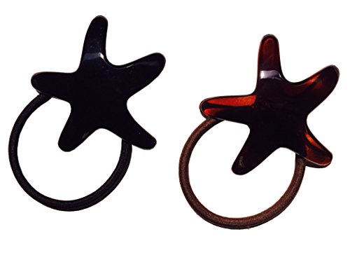 Parcelona French Star Set of 2 Brown Shell N Black Ponytail Holder Hair Elastic Tie Ponies Bands