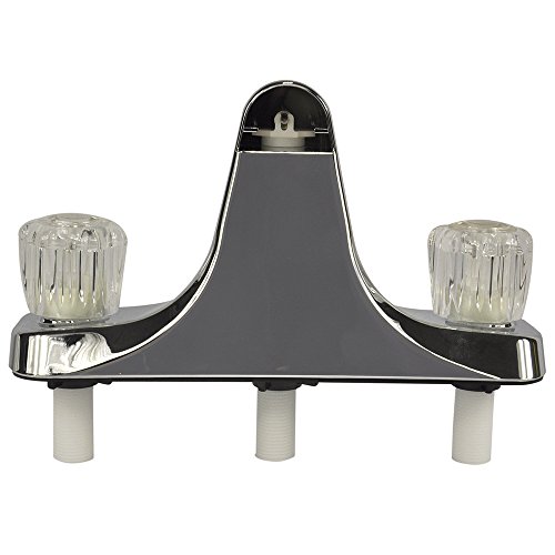 Update your mobile home bathroom with the Danco Tub/Shower Faucet. This 8 in. tub/shower Faucet has a center-set design. It features clear acrylic knob handles that adds a vintage style to your tub/shower. The separate handles for hot and cold water allow you to regulate the water to just the right temperature. The classic chrome finish will match your existing bathroom decor.