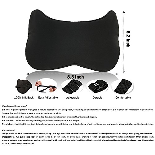 100% NATUAL SILK EYE MASK:Comfortable, breathable, silk eye mask, treat your eye with a spa, relieve eye fatigue, dilute the dark circles. Skin-friendly silk sleep mask, so you have a comfortable rest. Double-sided silk eye mask, double-sided comfort experience. Skin care, comfortable, silk sleep mask contains a variety of amino acids, moisten your delicate skin.