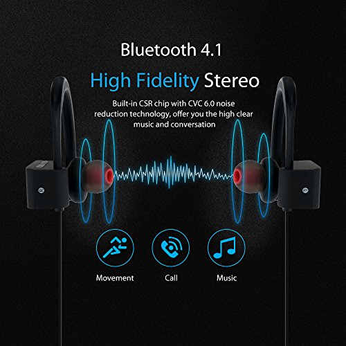 Bluetooth V4.1 Offers a easier, faster, high quality stereo music and clear speech within 66 feet, CVC 6.0 noise cancellation technology